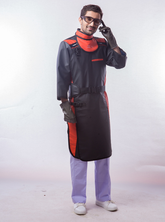 檢測使用射線防護(hù)服中超柔軟長袖膠衣的效果: